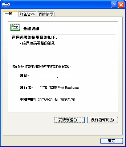 對鎖頭double click滑鼠左鍵,會出現憑證資訊